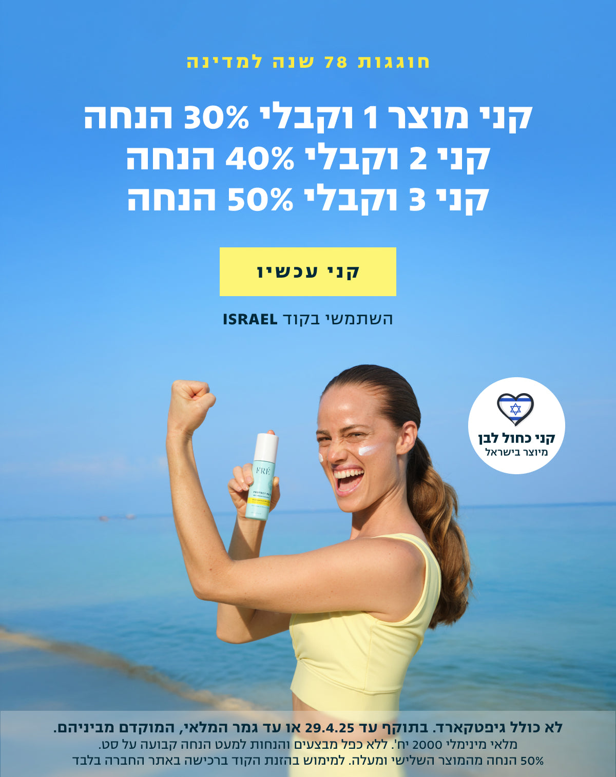 השתמשי בקוד ISRAEL לרכישה מסתיים בעוד