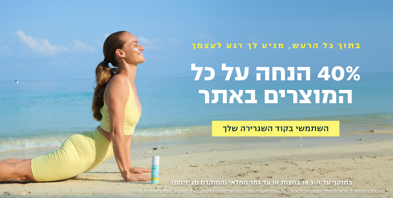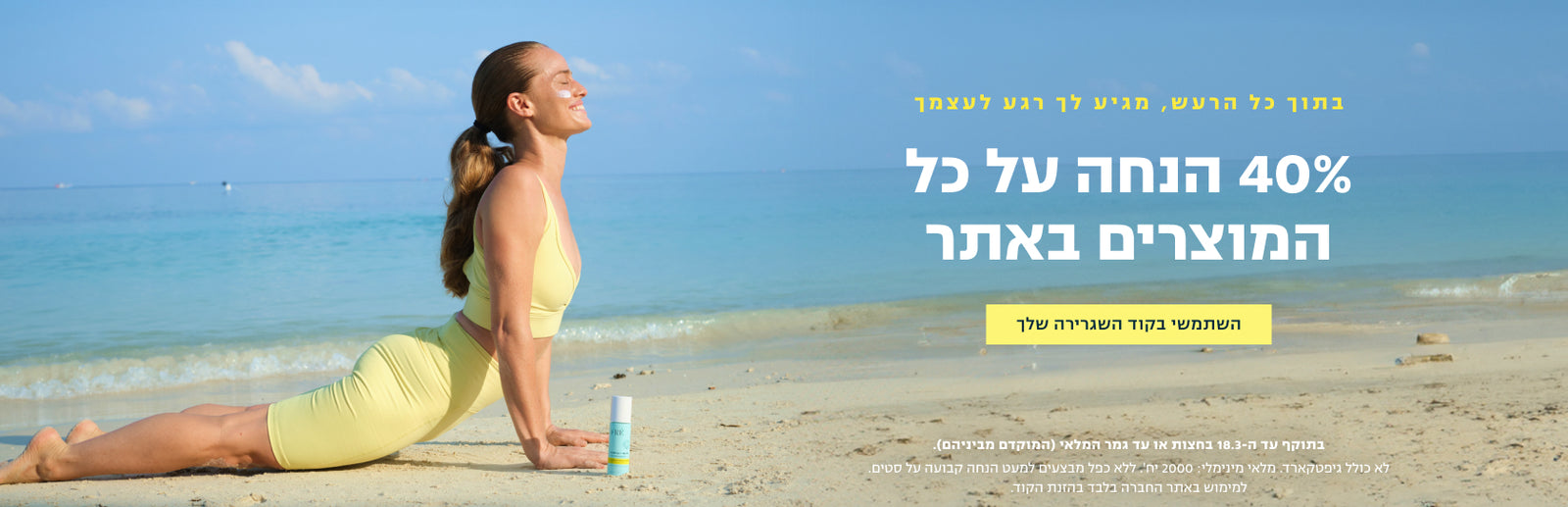 40% הנחה על כל המוצרים באתר! השתמשי בקוד השגרירה שלך
