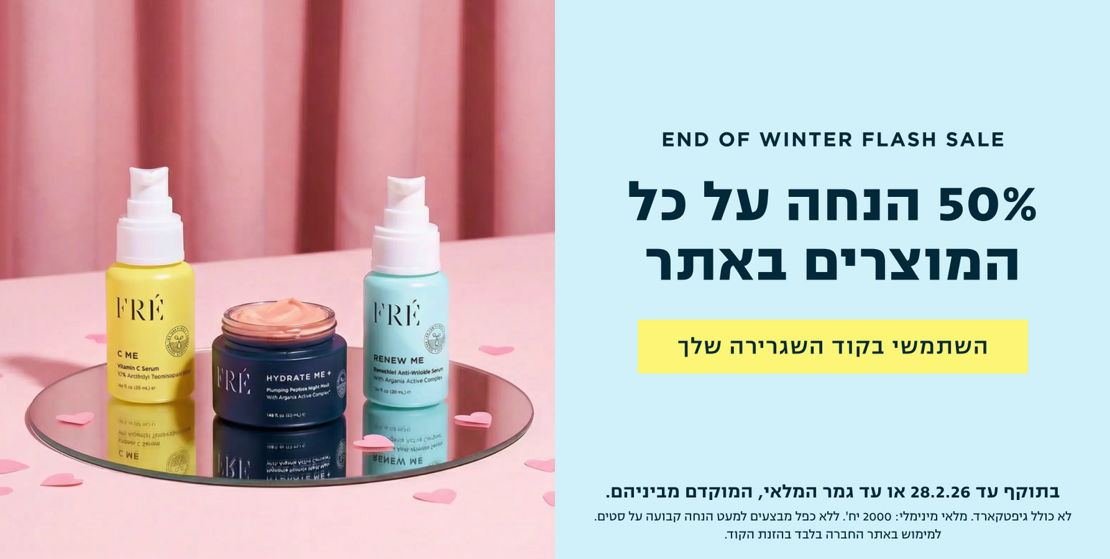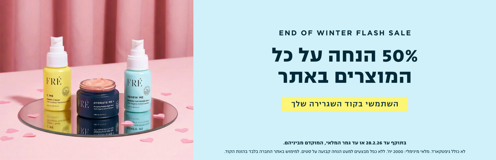 50% הנחה על כל המוצרים באתר! השתמשי בקוד השגרירה שלך. מסתיים בעוד