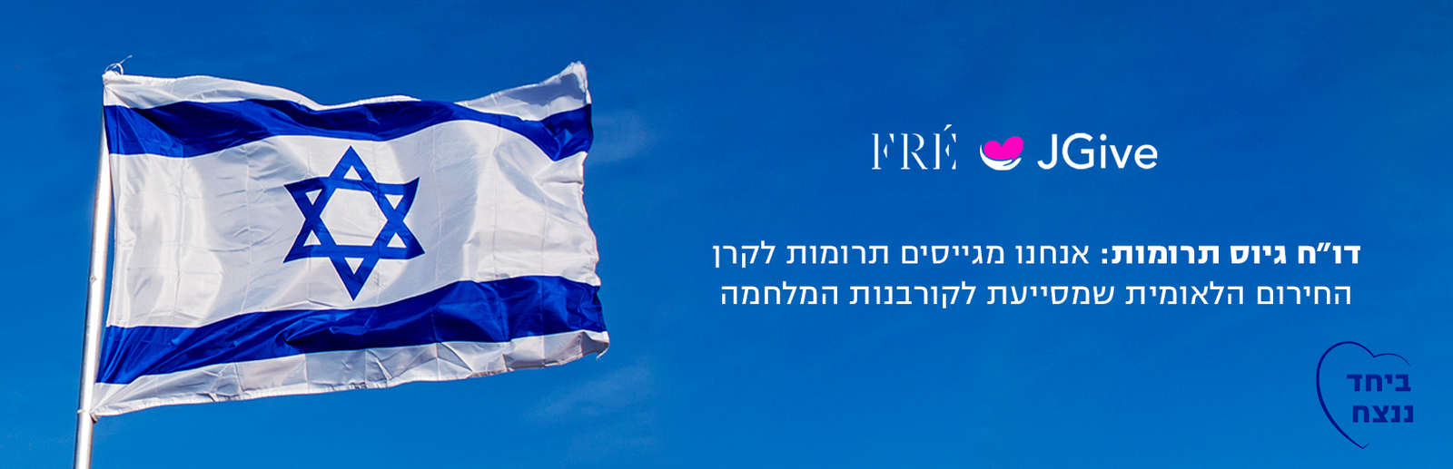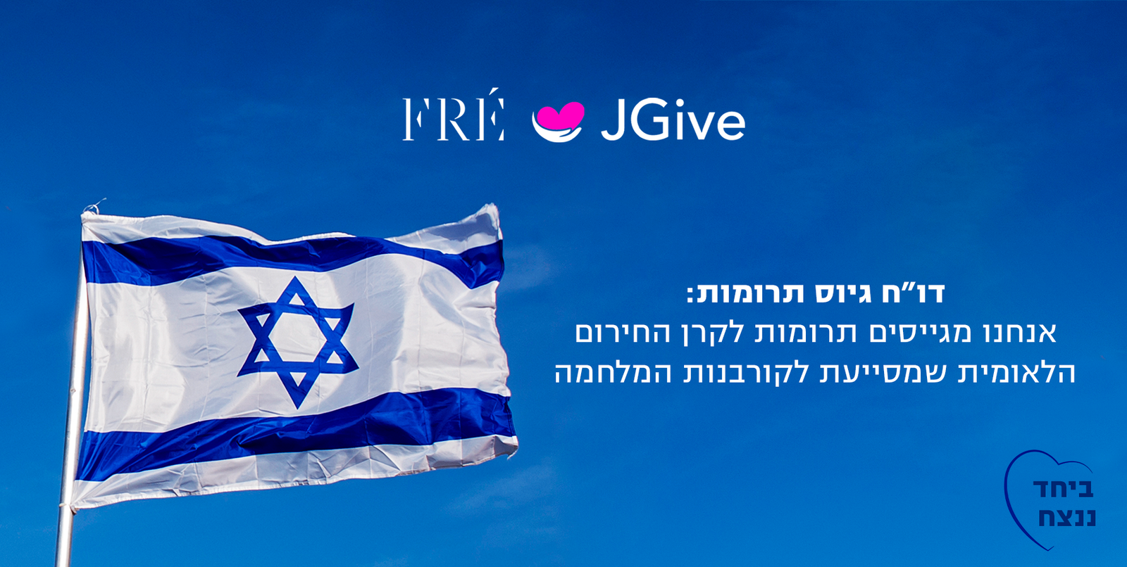 כדי לסייע לנפגעי המלחמה בישראל, תרמנו לקרן החירום הלאומית של ישראל שהוקמה על ידי JGive ואישי ציבור מובילים בישראל, ביניהם אליעזר שקדי - מפקד חיל האוויר לשעבר, יו"ר הוועדה, איילה פרוקצ'יה - שופטת בית המשפט העליון לשעבר, ונתן שרנסקי - מנכ"ל הסוכנות היהודית לשעבר. נכון ל21 לנובמבר, חברת FRÉ תרמה ₪28,959 לקרן בנוסף ל₪6,092 שהקהילה והחברים של FRÉ תרמו. סך כל עמוד התרומות שלנו עומד על ₪35,051